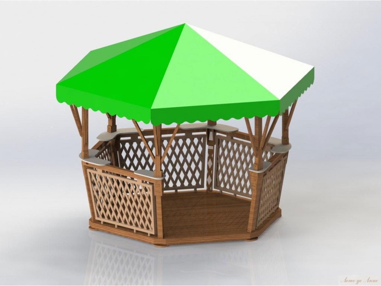 Данная модель садовой беседки позаимствовала все лучшие черты и характеристики своих предшественниц, в совокупности с высококачественными материалами, используемыми в производстве. В качестве крыши используется тентовый навес из маркизной водоотталкивающей ткани, по внешнему виду схожий с крышей беседки «Грация». Одно из главных отличий беседок новых моделей «Сиеста» — применение решеток нового типа . Данные решетки изготавливаются полностью из древесины, без использования нашего «фирменного» плетения. ХарактеристикиВысота 310 см. Диаметр по кровле, см 403,8Диаметр по перилам, см 328,9Диаметр основания, см 296