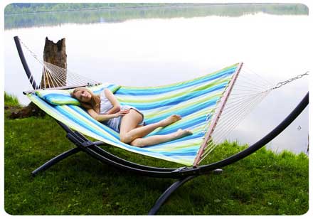 Необычайно уютный, прочный, убаюкивающий гамак «Malibu» располагает к отдыху где бы Вы ни находились. • Гамак «Malibu» — это известная форма так называемого американского гамака, в котором обязательно есть поперечные перекладины, длина которых соответствует ширине полотна самого гамака, отдыхать можно используя и длину и ширину распрямленного полотна. • Приятная плоская подушечка является прекрасным дополнением к гамаку, она может крепиться на липах к перекладине с обеих сторон. • В таком гамаке спокойно и уютно могут расположиться двое, наслаждаясь приятными минутами отдыха на свежем воздухе. • Каркас в комплект не входит!