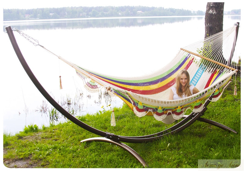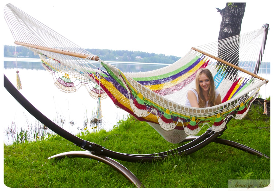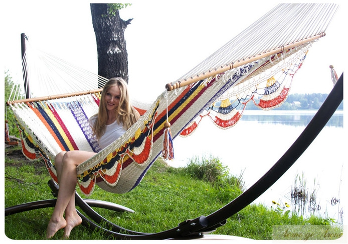 Модель «Managua» — это именно тот случай, когда гамак — это не только невероятное удобство, но и стиль. Такой гамак всегда станет выигрышным подарком и удовлетворит любым взыскательным вкусам. • Стильный плетеный гамак «Managua» станет изысканным украшением в любом месте. • Если вы любите оригинальные дизайнерские решения и мечтаете соединить их с удобством обстановки — гамак «Managua» станет незаменимой вещью. • Зачем загромождать комнату диванами и креслами, если в ней достаточно подвесить вот такой гамак, в основе которого искусное плетение разноцветных нитей дает сочетание сколь редкое, столь благородное и выигрышное. • Не менее мастерски выполнена «кружевная» бахрома, а углы гамака «Managua» украшены кистями. • Но не только в изысканной красоте дело — гамак может стать и местом работы, и местом отдыха. • Каркас в комплект не входит!