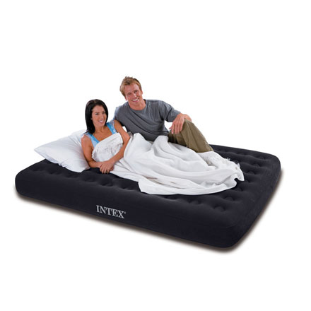 Получить две кровати из одной легко. Просто выньте внутренний матрас — и у вас получится шикарная глубокая кровать и удобный матрас. Флокированное (велюровое) покрытие, нанесённое на поверхность кровати, не позволит скользить простыне. Материал надувной кровати — прочный высококачественный и водонепроницаемый винил. Высота кровати Intex от пола 56 см,что позволяет без проблем садиться и вставать с кровати, высота внутреннего матраса — 23 см.