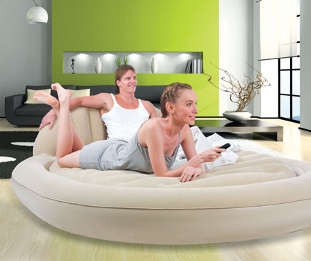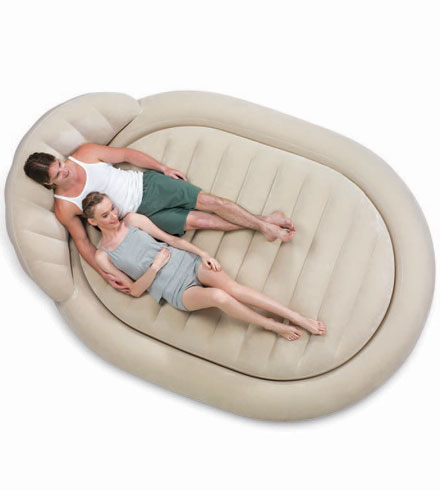 Надувная двуспальная кровать оригинального дизайна со спинкой с подголовником.