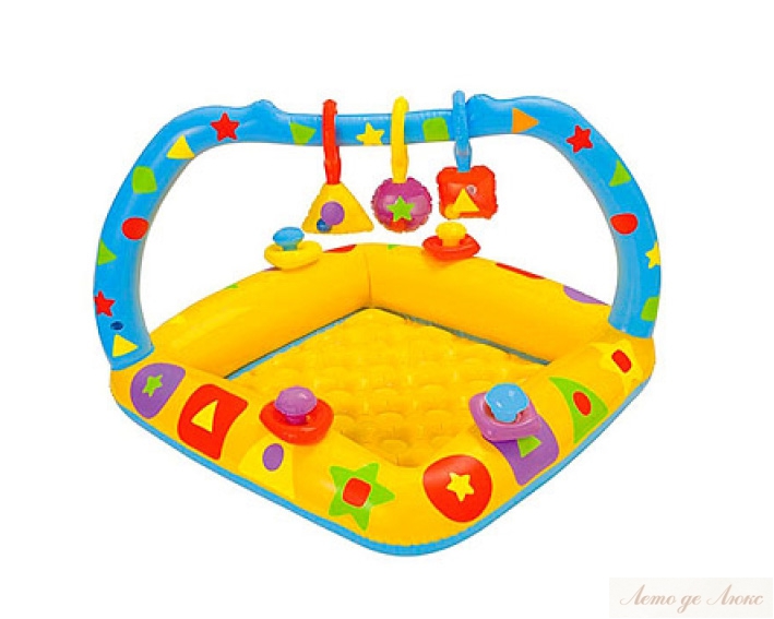 Артикул:57401 Производитель:Intex Страна-производитель:Бренд США, производство Китай Вес:1 кг. Габариты:Длина- 91 см, Ширина- 91 см, Высота- 66 см В комплекте четыре колечка с надувными игрушками. На стенки бассейна нанесены различные геометрические фигуры, которые помогут Вам в игровой форме научить ребёнка цветам и формам. Объём бассейна при 80 % наполнении 45 литров. Стенки детского бассейна сделаны мягкими, чтобы мама могла легко облокачиваться на край и ребенок не ушибся.